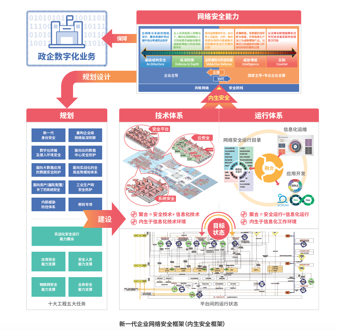 随着数字经济的发展,数字化已经开始贯穿于经济社会发展的各个领域、各层级,而数字化安全对于企业和每个人的重要性不言而喻。2019年,奇安信提出内生安全理念,吴云坤打了个比喻,“内生安全就好比建造房子的过程,将安全防护措施内置进房屋的规划设计、建材选择、施工建设,以及后期维修的每一个步骤中,从顶层视角出发,规划建立建设、运行的全景视图以指导网络安全建设。”基于该理念,吴云坤推动“内生安全框架”在百余家央企、数字城市、重要部委及能源、金融等重要行业中落地实践,帮助政企机构建立起“事前防控”的动态安全防御体系,立足解决未来十年到二十年的网络安全体系问题。