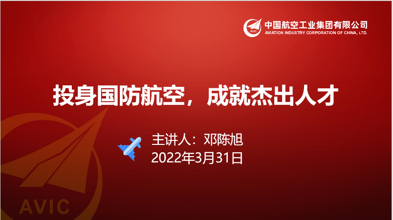 最后,结合公司里的衣食住行和薪酬待遇,邓陈旭为同学们分析了前往国防单位就业的前景,介绍了成飞公司大力培养在职研究生的政策,鼓励大家积极投身国防军工企业,更进一步地实现航空报国的梦想,为国家的繁荣富强、为祖国航空事业的信息化建设贡献力量。