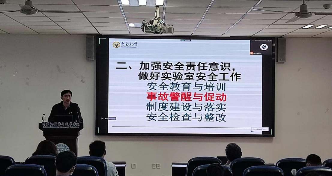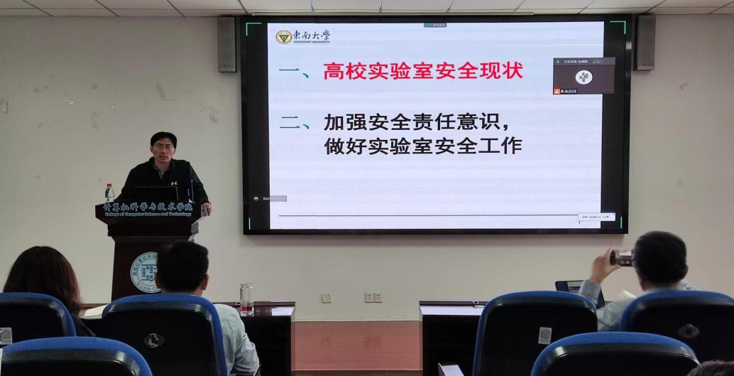 2022年5月10日上午,44118太阳成城集团/人工智能学院组织召开了实验室安全培训讲座。本次活动邀请东南大学实验室与设备管理处副处长王继刚教授带来主题为“加强安全责任意识,做好实验室安全工作”的讲座,学院书记刘健荣、院长陈兵、副院长燕雪峰、院长助理李鑫、安全员朱润泽以及各实验室、工作室的师生代表参加了此次讲座,讲座由副院长燕雪峰主持。