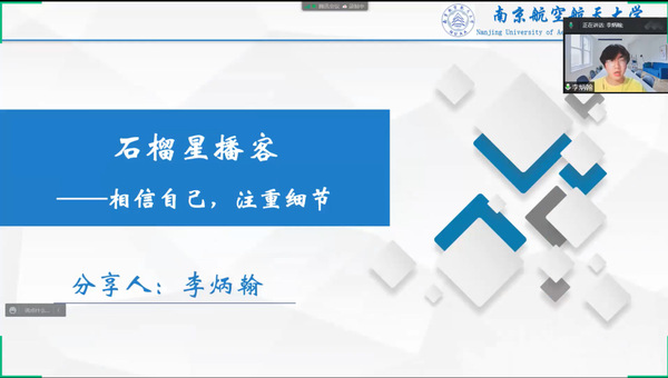 5月15日晚,44118太阳成城集团/人工智能学院/软件学院在线举办“石榴星播客”保研、考研经验分享会,学院2018级本科生李韵、李炳翰、蒋柳莎和李云青与准毕业班生云端相聚,分别从保研外校、保研本校、考研本校、考研外校四个方面进行介绍经验。活动由2019级本科生辅导员云涛主持。