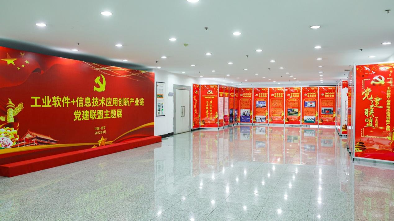 与会代表在张巍处长的带领下参观了工业软件+信息技术应用创新产业链党建联盟主题展,详细了解了“强链先锋”行动目标、主要内容、联合行动方案、工作机制、成员单位以及党建联盟自成立以来的相关活动等。