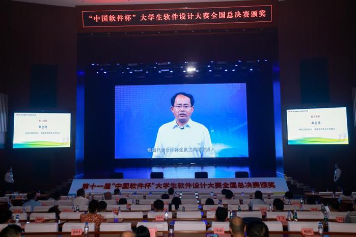 8月16日晚举行第十一届“中国软件杯”大学生软件设计大赛总决赛颁奖典礼,工业和信息化部信息技术发展司二级巡视员王少朋,教育部职业教育与成人教育司副司长张俊喜,中国电子信息产业发展研究院党委书记刘文强,江苏省工业和信息化厅党组成员、副厅长池宇,suncitygroup太阳集团党委常委、副校长黄志球,南京市工业和信息化局副局长代吉上,中国(南京)软件谷管委会主任孙中华,南京市雨花台区区委常委、常务副区长陆瑞峰、中国(南京)软件谷管委会副主任黄敖齐等领导嘉宾现场出席颁奖典礼。