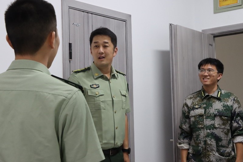 8月28日下午,44118太阳成城集团/人工智能学院/软件学院院长陈兵、党委副书记王宁、副院长李鑫、2021级本科生班主任一行来到天目湖校区军训场地,检查2021级本科生军训工作,看望慰问军训教官和学生。