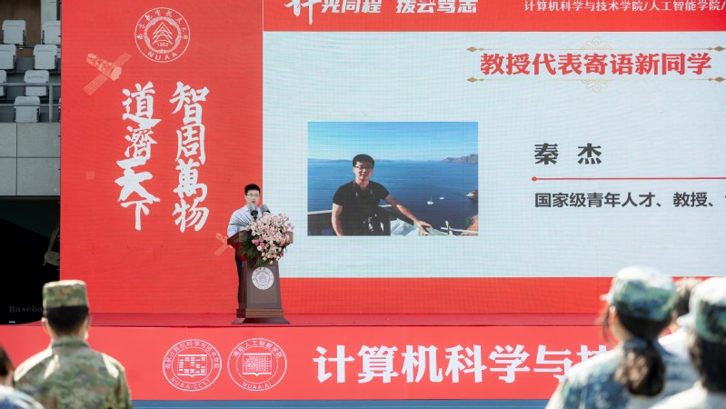 2022级迎新主题片《四海同光》拉开了此次开学典礼的序幕。会上,陈兵介绍了学院的基本情况并致欢迎辞,对加入南航计算机学院的新同学们表示热烈的欢迎和祝贺,陈兵从献身国防、服务国家的理想信念谈起,为新同学们未来大学生学习生活提出了三点建议,勉励新同学要做到有想法、有方法、有做法,养成良好的学习习惯,利用好学习时间,将想法付诸实践。