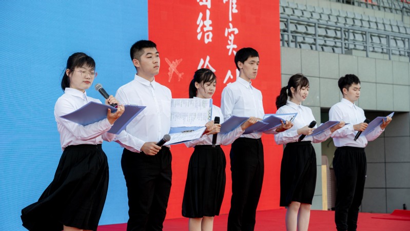 10位2022级本科生带来原创诗朗诵《智能时代·强国有我》,他们用铿锵有力的字句许下“强国有我”的誓言,志愿以昂扬奋进的姿态迎接中国制造2025、“互联网+”和工业化、信息化、国防现代化融合发展的时代大潮。