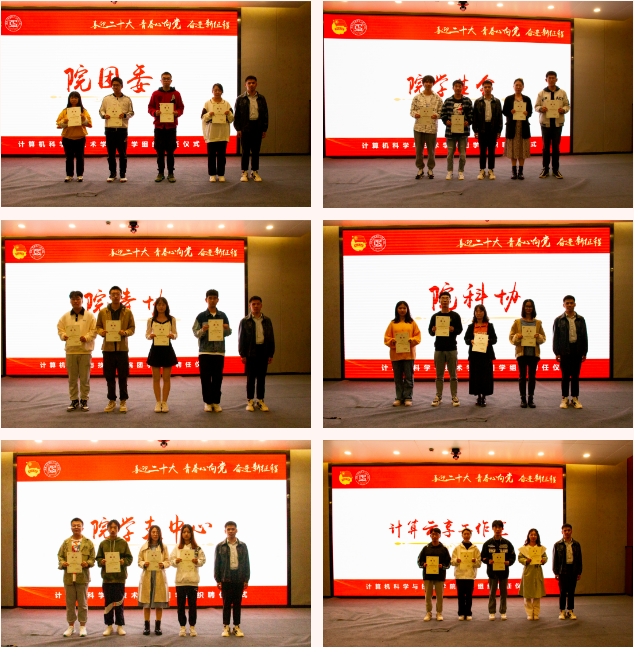 首先,进行各团学组织新一届负责人聘任仪式。孙明智为各团学组织代表颁发聘书,并与代表们合影留念。