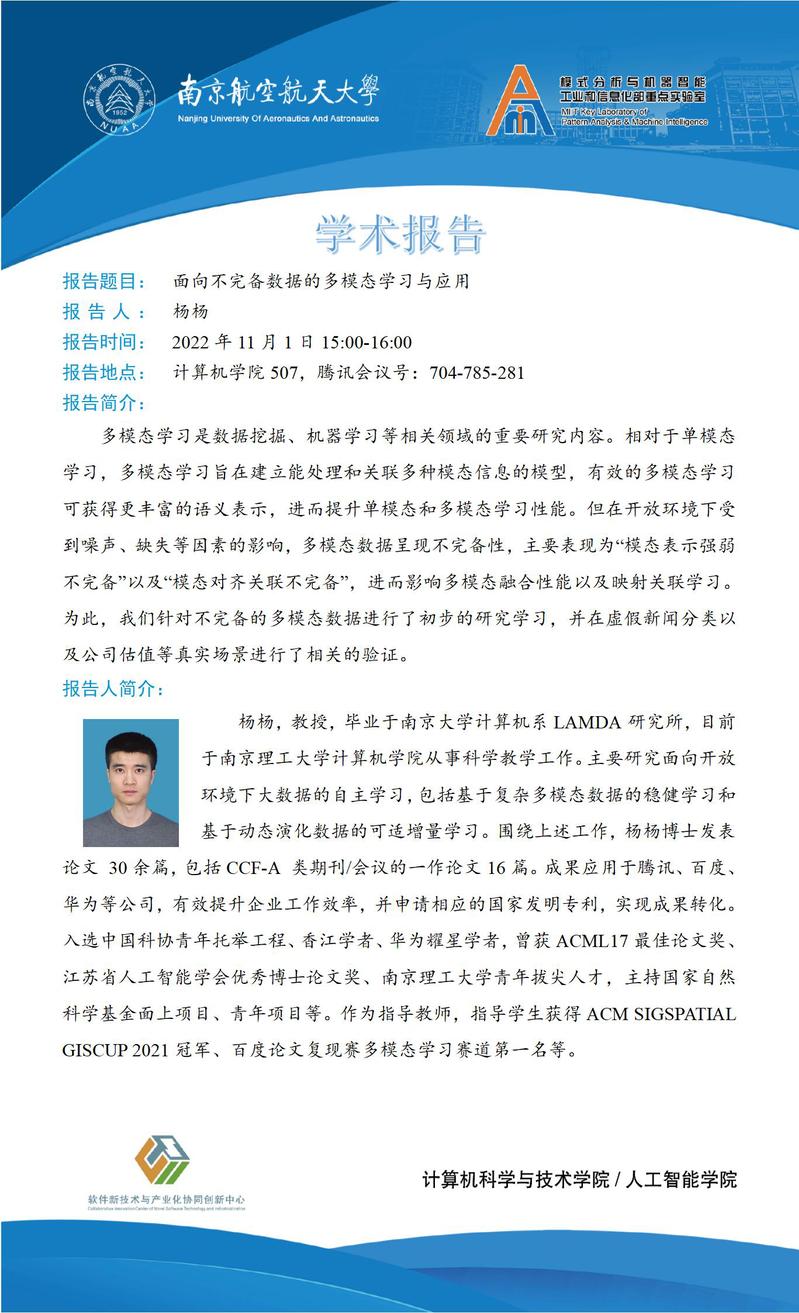 【石榴大讲堂】面向不完备数据的多模态学习与应用