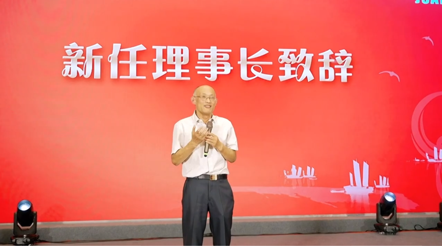 陈松灿从学会首任理事长、南京大学周志华教授手中接过会旗,他向首届理事会作出的杰出贡献表达崇高敬意和感谢,并表示学会将会团结组织广大人工智能领域科技工作者,积极开展国内人工智能领域学术交流,发现和推荐人工智能领域优秀科技人才,不断提升人工智能理论研究水平,持续为推动我省人工智能科技技术进步、提高全民科学素养、强化人工智能与实体经济深度融合贡献力量。