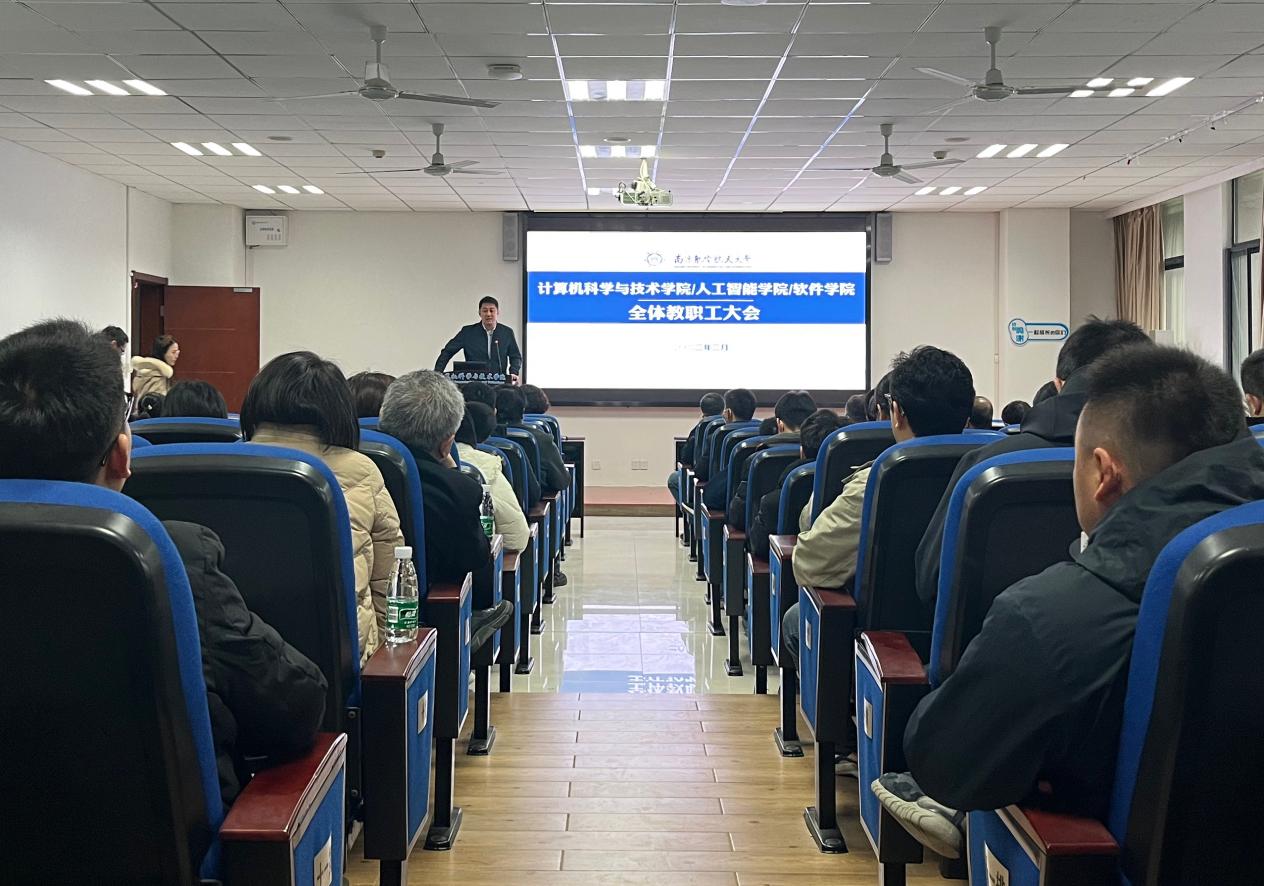 3月17日,44118太阳成城集团/人工智能学院/软件学院召开全体教职工大会,传达学习校第十七次党代会及校党委重要会议精神,总结部署学院重点工作,开展专题教育。学院全体教职工参加会议,会议由学院党委副书记王宁主持。