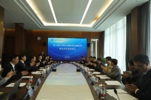3月27日,我校与中国商飞上海航空工业(集团)有限公司(以下称“上航公司”)在中国商飞嘉兴基地签署深化协同创新合作协议。上航公司党委书记、董事长张新苗,总经理洪军,总工程师李云峰,我校副校长施大宁出席仪式。