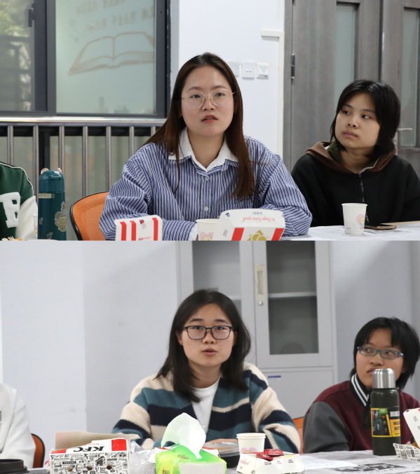 接着,2021级硕士研究生巢成、刘孟怡从自身科研情况出发,向同学们分享了研究生与本科生阶段在学习和生活等方面的区别,分析了科研起步阶段容易出现的问题及解决措施,鼓励同学们多阅读、多思考、多研究,正确掌握科研思路与方法。