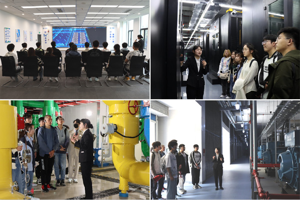 在南京移动工作人员的引导和解说下,同学们先后参观了运维与监控大厅、腾讯专用数据大楼、水冷空调系统与备用发电设施,通过沉浸式研学体验,详细了解了数据中心在承接跨区域、云端、金融算力等需求过程中,所提供的各项硬件基础和服务保障,深入探索多学科、多领域的顶尖技术融合凝结成的“科技结晶”。