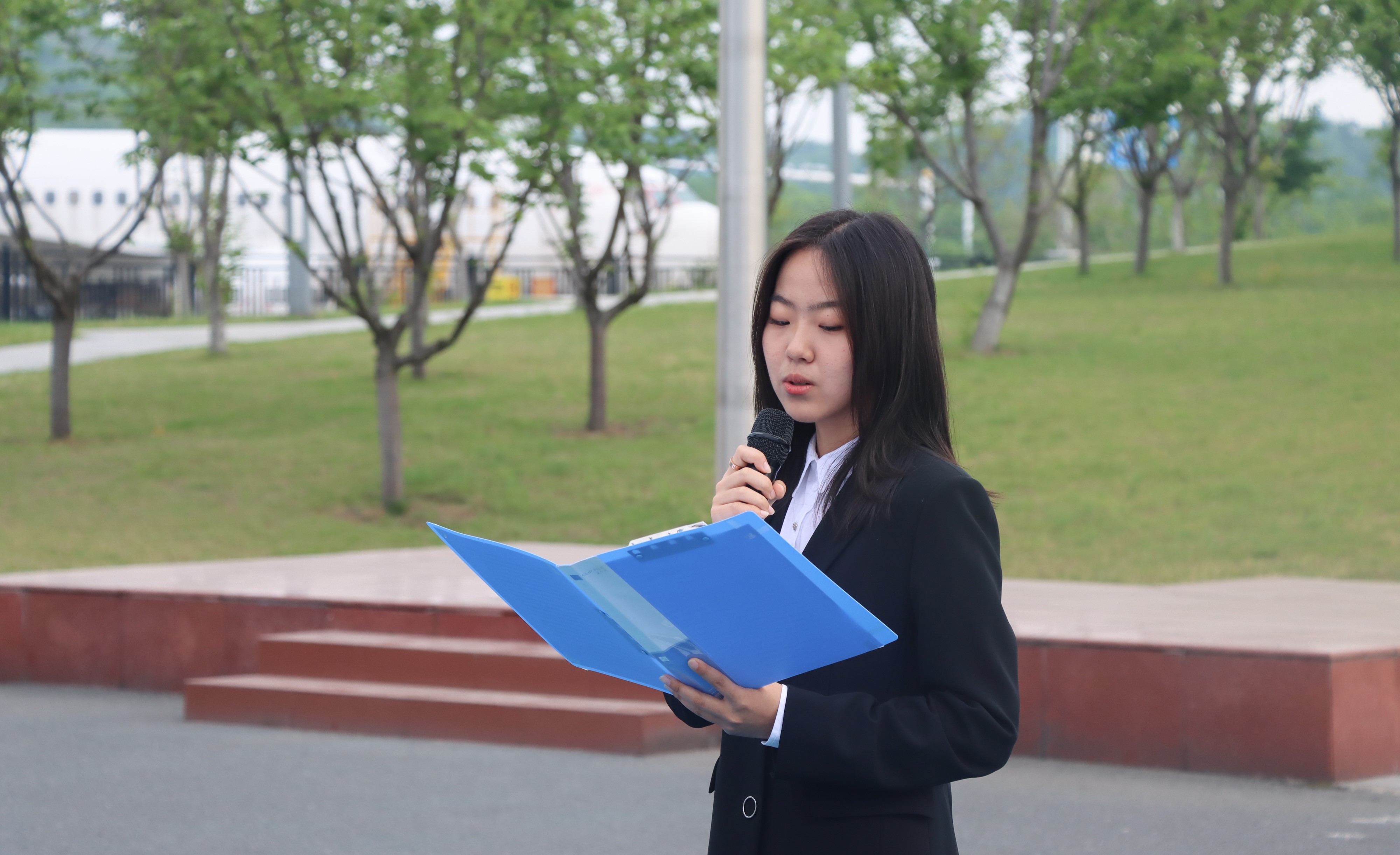 在鲜红的国旗下,学院2022级本科生赵泽琦发表了主题为“铭记历史,共创未来”的演讲,她号召大家接过时代接力棒,将火热青春融进祖国的江河,继承先辈爱国情,树立空天报国志,共创美好新未来。