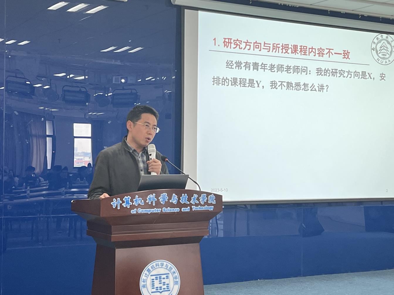 陈兵结合自身工作经验,向青年教师提出三点建议。一是提起上课的“神”,在思想上高度重视,在课堂中展现出南航教师的精神风貌,感染学生融入课堂;二是钻研上课的“术”,合适的教学方法能够让课堂增添趣味,激发学生探索的兴趣;三是持之以恒的心。做到这三点,不管在教学还是科研的道路上,一定能够走的更远。