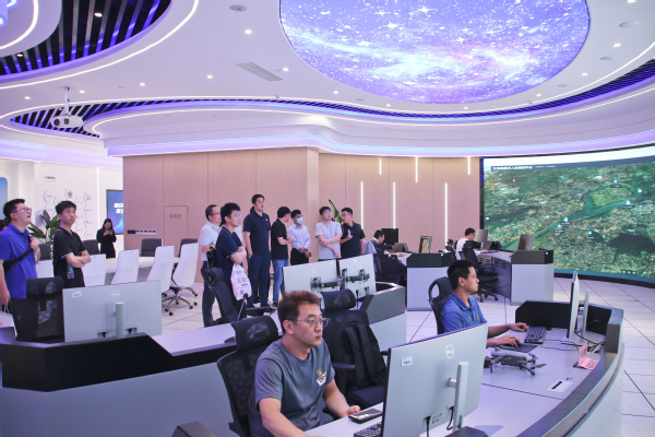 随后,团队一行人来到了南京民用无人驾驶航空运行管理中心指挥大厅,了解了南京民用无人驾驶航空试验区建设情况、无人机产业发展状况以及校地建设项目成果。