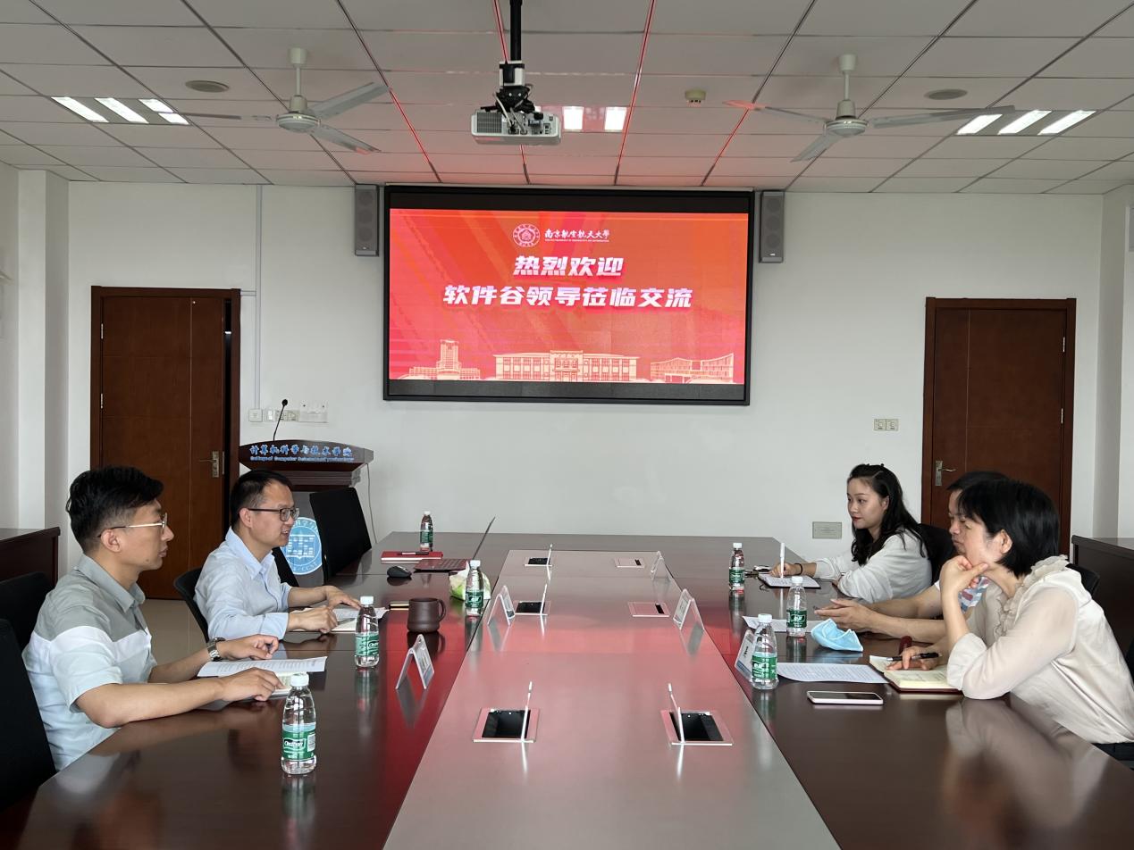 5月31日,中国(南京)软件谷企业服务部部长翟云海、副部长吴霞一行来到计算机学院开展产教融合交流,计算机学院副院长李鑫、院长助理张静宣、教学办主任林卉参加调研交流会。