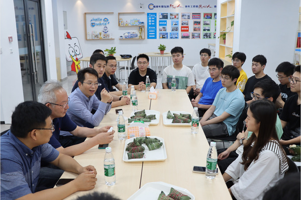 之后,全体师生一同品尝粽子,并围绕专业发展前景、大学生职业生涯规、科技创新等问题展开了交流,老师们结合个人成长发展经历,耐心地为同学们答疑解惑。