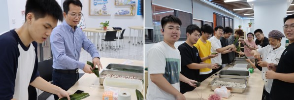 包粽子开始前,崔煜康对中国传统节日端午节进行了简要介绍,他表示,在端午节来临之际组织同学们包粽子是为了让大家能够充分感受中华优秀传统文化,表达感恩之心,传递同窗情谊。在食堂师傅的指导下,师生围聚在一起折粽叶、装糯米、放馅料、裹扎绳,一只只“形状各异”的粽子便成型了。在制作粽子的过程中,全体师生还分享了端午节的由来、传统文化习俗等,一同感受传统文化魅力,传递真挚情谊,现场气氛热烈。