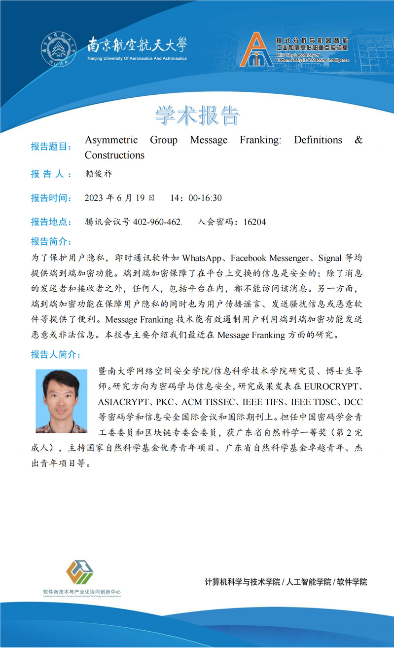 【石榴大讲堂】Asymmetric Group Message Franking: Definitions & Constructions