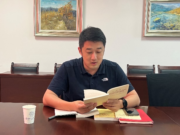 最后,刘健荣作总结发言,就推进主题教育工作提出三点要求,一是严格按照主题教育部署要求和工作安排,通过集中学与自学、全面学与重点学、理论学习与运用转化相结合的方式,积极推动主题教育升温;二是不断深化拓展学习成果,将调查研究与中心工作和群众需求相结合,切实把问题整改贯穿主题教育始终,让师生感受到解决问题的实际成效;三是坚持立足工作实际,把理论学习、调查研究、推动发展、检视整改等贯通起来,有机融合、一体推进学院高质量发展,努力在以学铸魂、以学增智、以学正风、以学促干方面取得实效。