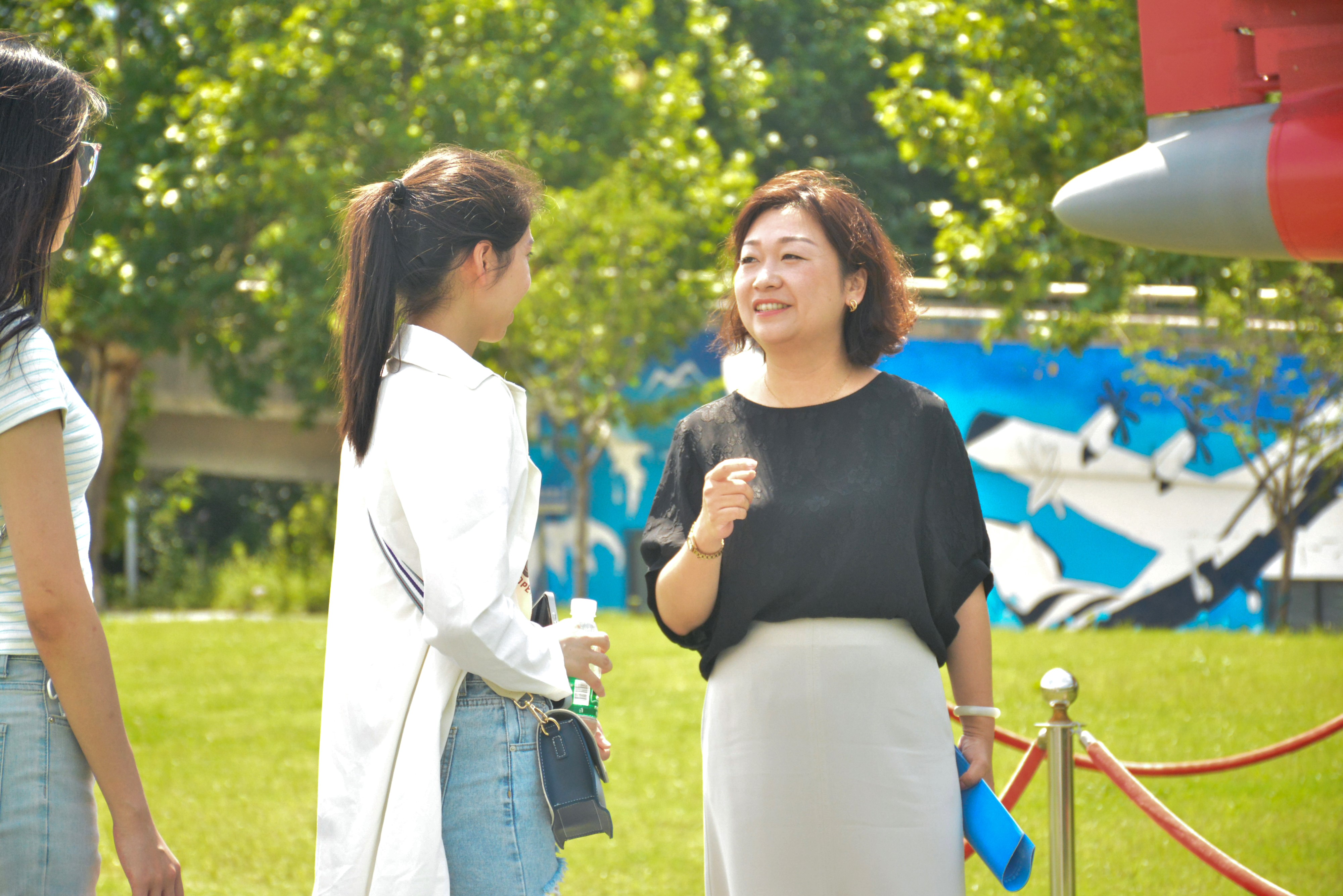 王静为同学们介绍了御风园基地的建设背景,鼓励同学们常怀航空报国之志,将个人理想融入党和国家事业之中,为建设航天强国、网络强国贡献新时代南航青年的智慧和力量。从新中国自行生产的第一型飞机初教5、抗美援朝的米格-15战斗机,再到我国自行设计制造的歼8和歼-8Ⅱ歼击机、长征四号运载火箭、长空一号,同学们全方位了解空天装备,沉浸式感受我国航空航天事业的发展成就,追寻着南航人航空报国、贡献国防的奋斗足迹。