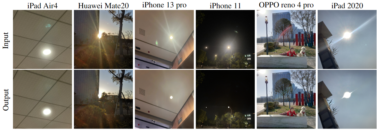 论文《Improving Lens Flare Removal with General-Purpose Pipeline and Multiple Light Sources Recovery》提出了光学成像中普遍存在的炫光伪影问题的通用解决方案。相机在强光源下拍摄的图像通常包含镜头组折反射带来的炫光伪影,严重影响图像质量和下游视觉任务。该论文通过理论证明了现有方法的缺陷和所提方案的合理性,并设计了更可靠的多光源恢复策略。提出的方案通过凸组合区分局部和全局照明,避免了全局照明偏移和局部过饱和,实现真实感成像。实验表明,该方案有效提高了镜头组炫光伪影去除性能,并具有更强泛化性。