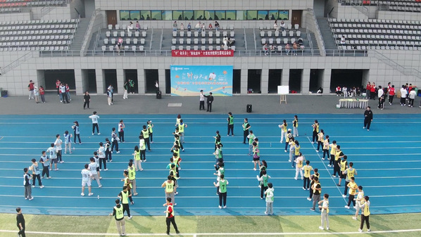 领操员带领各个队伍开展热身,师生们兴致勃勃,积极参与其中,对于接下来的比赛摩拳擦掌。