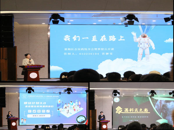 10月15日,自动化学院、电子信息工程学院、44118太阳成城集团团委在天目湖校区巡天楼一楼报告厅成功举办“学习二十大,永远跟党走,奋进新征程”2023年暑期社会实践悦享会暨梦想公开课。校团委副书记王洋,自动化学院党委副书记丁琛,天目湖校区团工委书记肖杰,各学院团委书记、辅导员以及三百余名学生现场参加了此次活动。