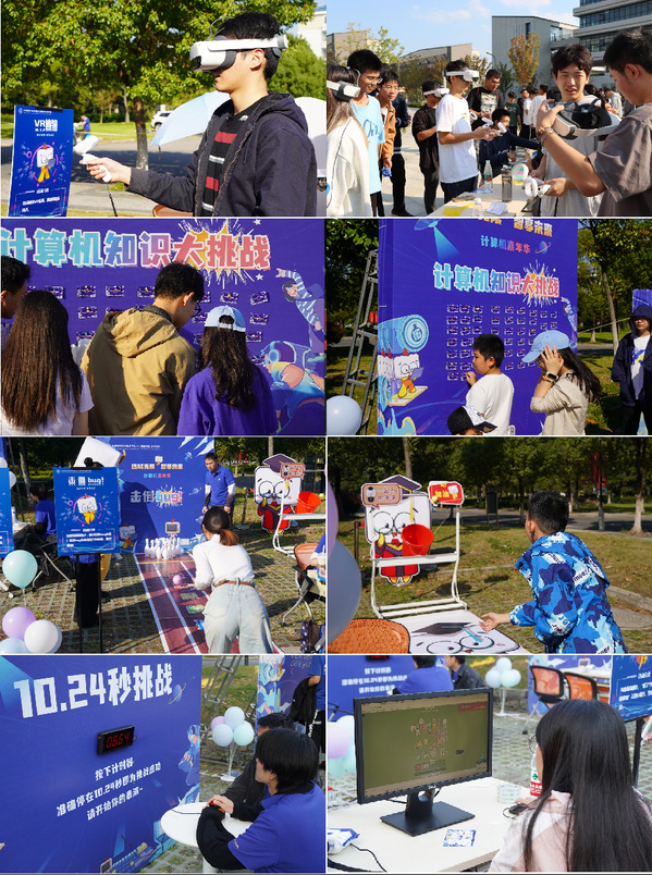 正值我校七十一周年校庆之际,校园里洋溢着喜庆热烈的氛围。学院为献礼校庆、迎接程序员节、推广前沿科技设置了多个专题活动,让师生们参与其中,在游玩和放松的过程中感受科技魅力。
