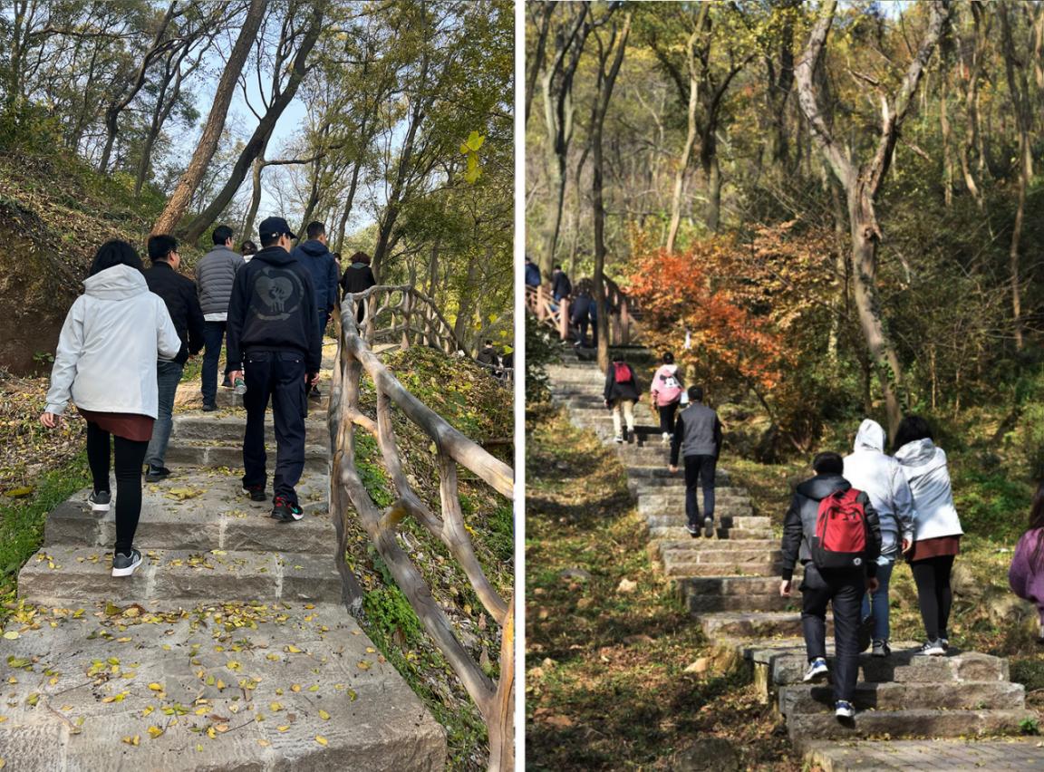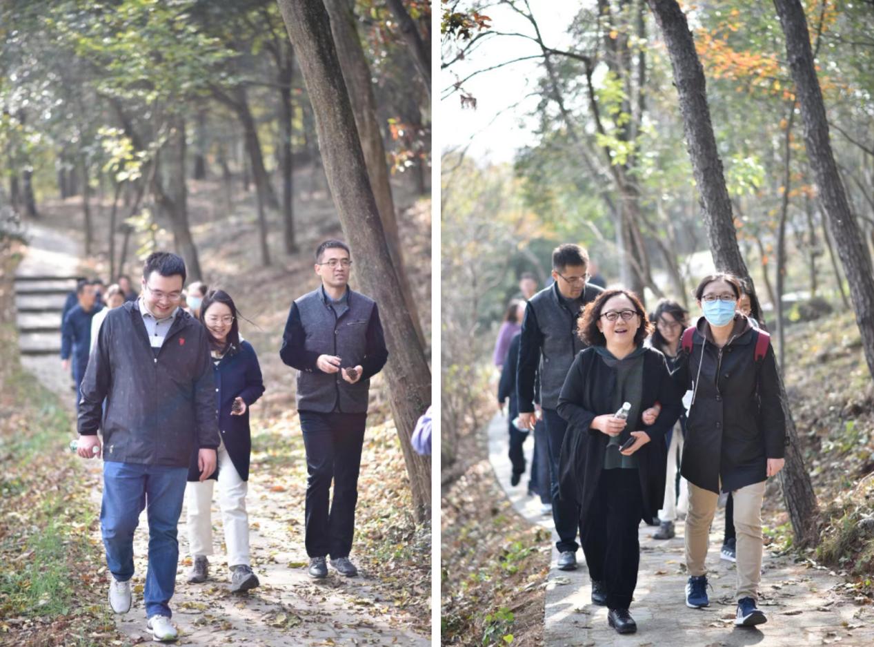 当天下午,参加徒步的教职工在起点合影留念后,开始向既定的徒步路线进发。秋末冬初、空气清新,沿途既有深秋的斑斓色彩,又有浅冬的诗意浪漫,一路共设置了3个打卡地点,学院党委书记刘健荣等院领导带队,老师们热情参与,个个精神抖擞、情绪饱满,浩浩荡荡的队伍为秋日增添了一道亮丽的风景。一路上,大家一边欣赏沿途的风光,感受大自然的美好,一边交流工作、畅谈生活,欢声笑语不断。