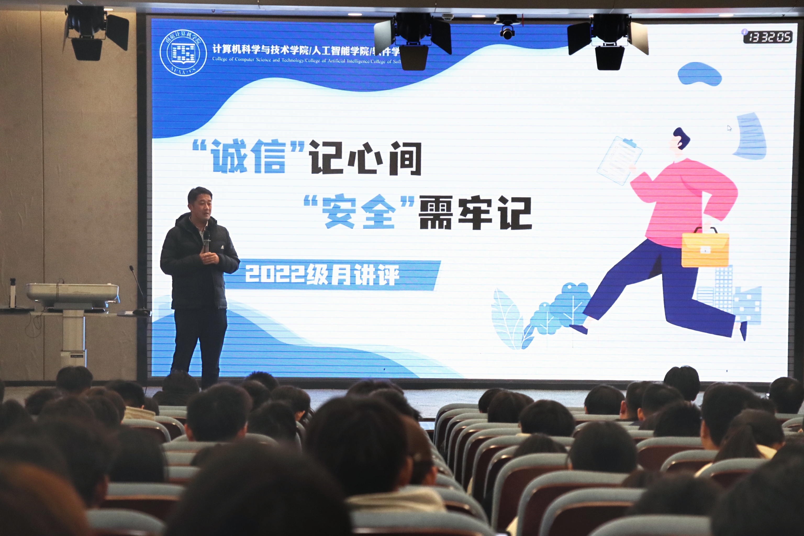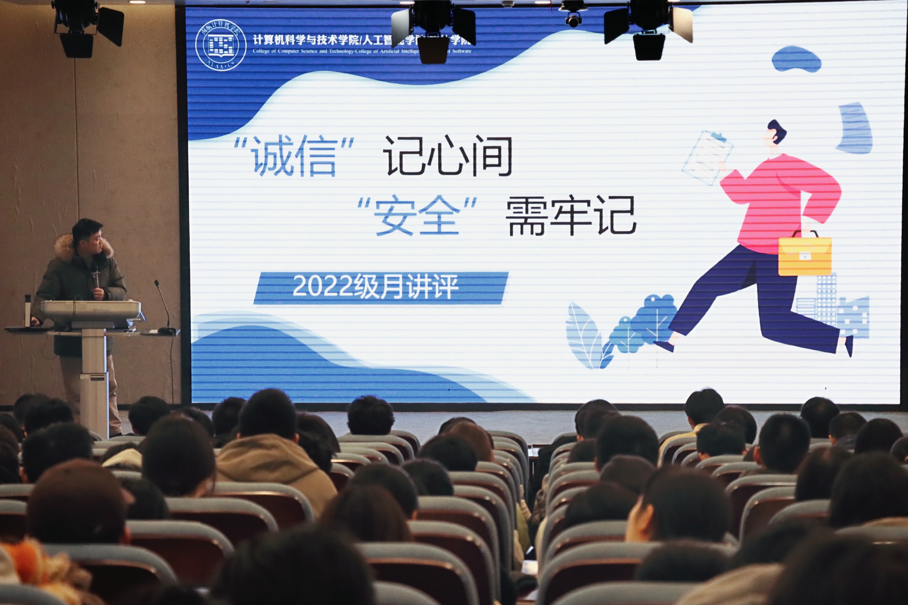 12月12日中午,44118太阳成城集团/人工智能学院/软件学院于天目湖校区巡天楼一楼报告厅举行了“让诚信记心间,安全需牢记”主题月讲评。学院党委副书记王宁、本科生辅导员王叶飞、云涛,2022级全体本科生参与。