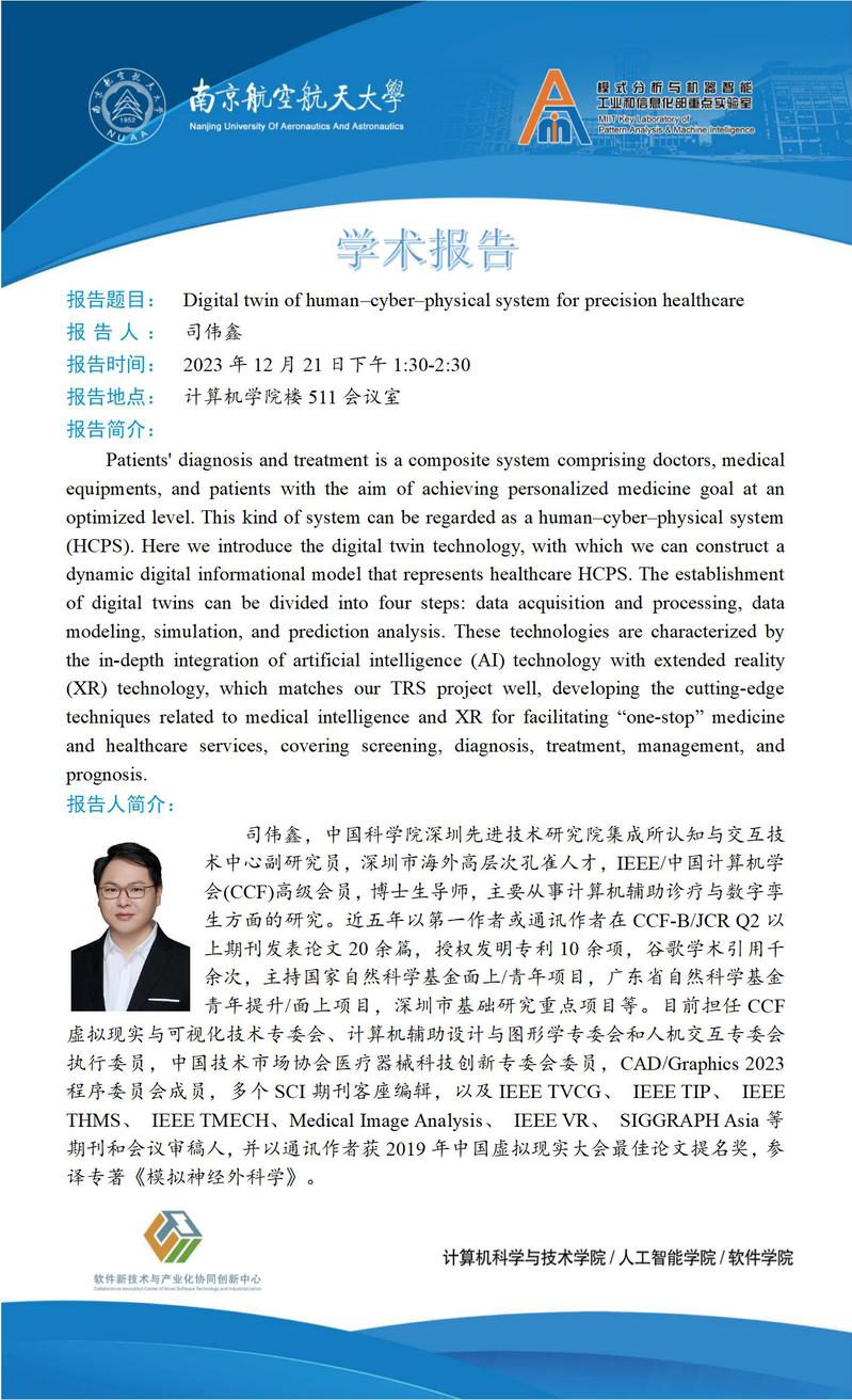 【石榴大讲堂】Digital twin of human–cyber–physical system for precision healthcare