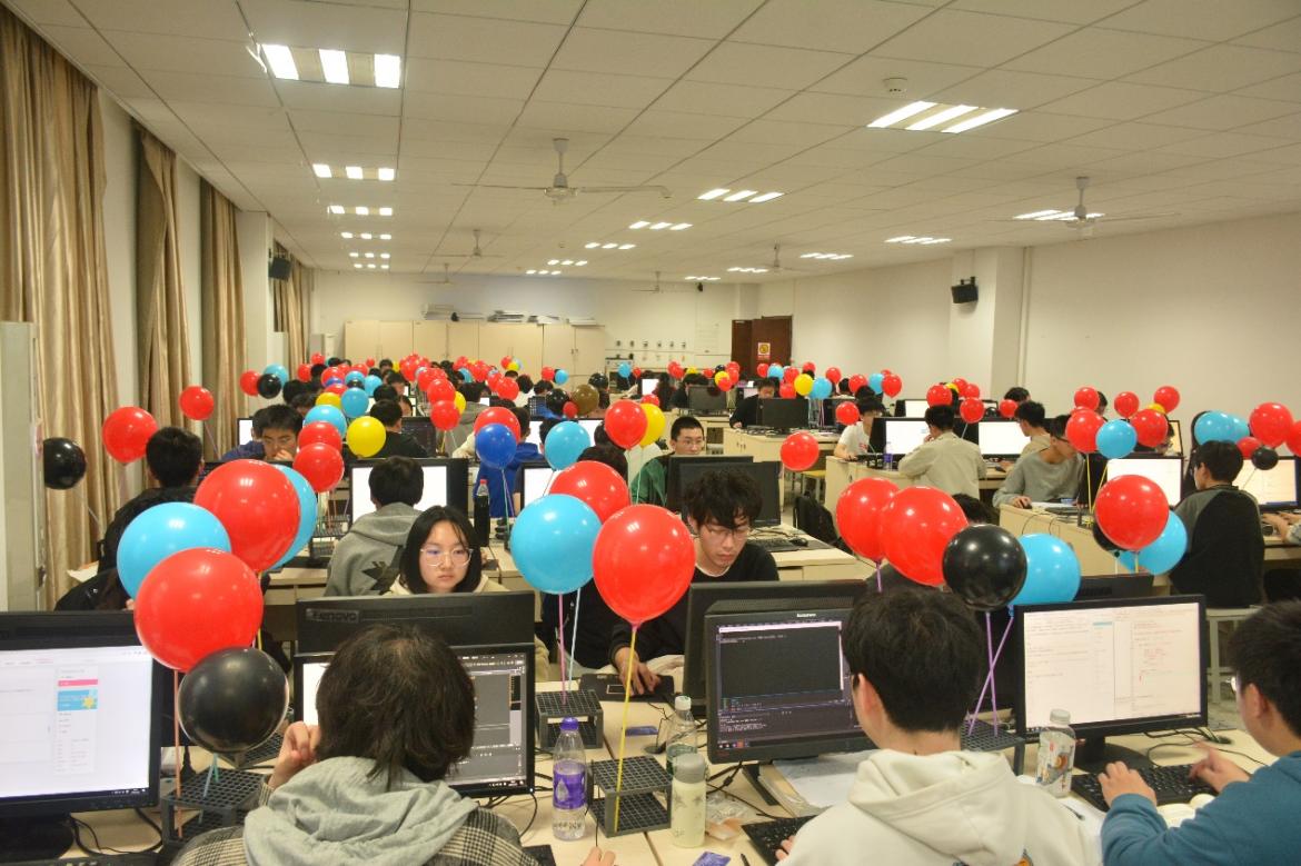 竞赛分为初赛和决赛两个阶段,初赛于3月17日在将军路校区与天目湖校区同步举行,共有来自14个学院的481名学生报名参赛。初赛排名前120名的同学进入决赛,决赛于3月23日集中在将军路校区计算学院实验教学中心举行。初赛阶段参赛同学总计提交11425份代码,平均每秒有1.06次代码提交;决赛阶段共提交2380份代码,平均每5秒有1次代码提交。