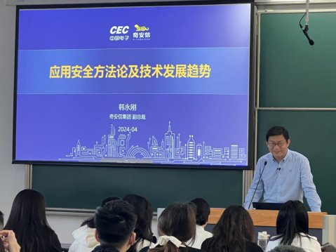 为强化校企合作及交流,落实产教融合课程建设,4月25日,奇安信副总裁韩永刚走进信息安全专业《网络安全》课堂。韩永刚结合产业实际,为同学们讲授《应用安全方法论及技术发展趋势》一课。