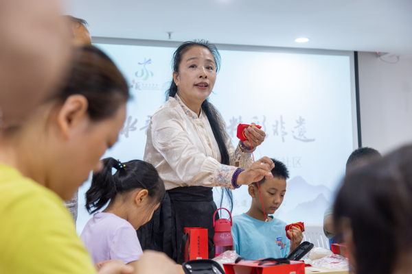 除了非遗现场展示体验,此次活动还邀请国家级非遗代表性项目徐州香包省级传承人井秋红老师,在社区文化活动中心向居民讲述徐州香包的传承故事,传授徐州香包的制作技艺。南航计算机学院的“非遗推荐官”们也加入了课堂,与社区居民一起学习这门手艺。在传承人的指导下,他们穿针引线,缝合绣片,填充草药。不久,一颗颗绣着红心、散发着淡淡药香的香包便在他们手中诞生。