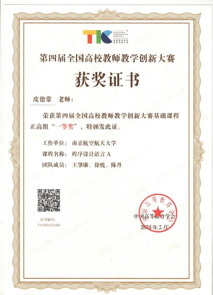 计算机学院皮德常教授团队荣获第四届全国高校教师教学创新大赛一等奖