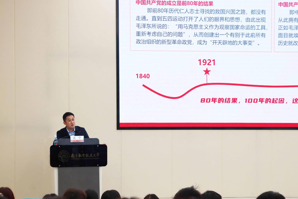 随后,王宁向学员们讲授题为《从伟大建党精神中汲取奋进力量,做新时代合格党员》专题党课。他从伟大建党精神的精髓要义、弘扬伟大建党精神的重要意义、做新时代合格党员三个方面,对伟大建党精神作了细致讲解和深入阐述,引导学员们深刻领会伟大建党精神的内涵和实质。他强调,伟大建党精神是中国共产党精神谱系之源,彰显了一代又一代中国共产党人“为有牺牲多壮志,敢教日月换新天”的奋斗精神。他鼓励学员们,要坚定不移听党话、跟党走,将伟大建党精神内化于心,外化为行,将个人梦想融入国家发展大局之中,勇担时代重任,不断锤炼自我,成为中国特色社会主义事业的合格建设者和可靠接班人。