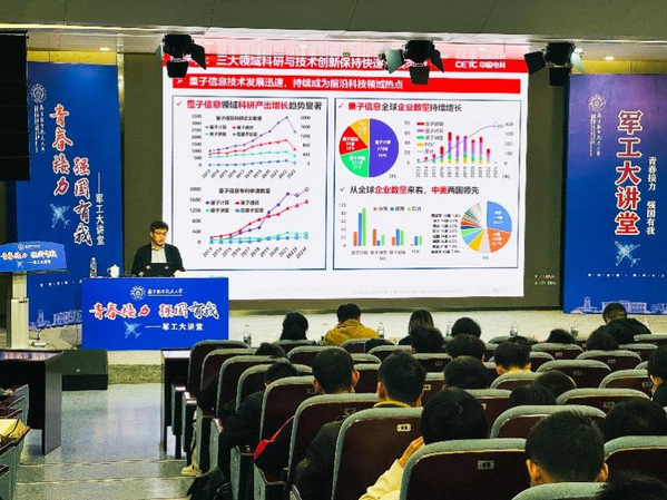 为践行“为党育英才、为国铸重器”的使命担当,丰富学校“三航”特色文化平台,11月21日,我校开展第13期“青春接力、强国有我”军工大讲堂。中国电子科技集团首席专家徐兵杰为师生讲授了题为《深耕量子通信,探索科技前沿,助力国家创新驱动发展战略》的精彩报告。天目湖校区党工委副书记、学生处副处长贡海俊,44118太阳成城集团/软件学院、人工智能学院党委副书记王宁以及300余名师生代表参加活动。