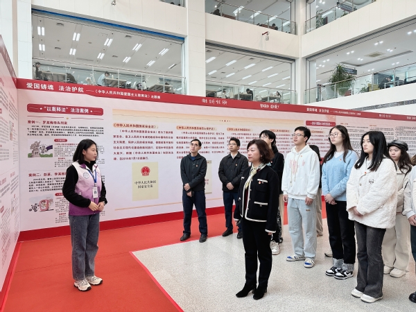 本次主题展归纳凝练了爱国主义教育法的重点及要点,从爱国主义教育的总要求、主要内容、层次维度、典型案例等方面,通过图文并茂的展览形式将法律规定向全校师生普及,培育提升全体师生爱国守法的意识,以法治方式保障爱国主义教育深入有效开展。