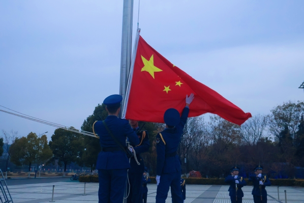 为庆祝澳门回归25周年,进一步厚植学生爱国情怀,弘扬爱国主义精神, 12月23日,学院在将军路校区西操场举行主题为“厚植爱国情怀,砥砺强国之志”的升旗仪式,学院2022级本科生辅导员、全体学生参与此次活动。