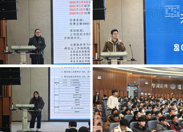 面向处于升学就业关键阶段的2022级本科生,会议聚焦保研规划思路、考研备战策略与就业能力提升三大核心议题。教务员刘雪娟详细解读暑期实习学分认定等管理要求。专业课教师朱琨结合全球计算机学科发展趋势,系统讲解海外名校申请流程,为意向出国学生指明准备方向。辅导员云涛、何玉婷通过分析发展路径,引导学生合理定位发展目标,制定个性化学习计划,做好专业课巩固与去向准备双线攻坚。会议鼓励在冲刺阶段保持战略定力,以科学规划与持续努力迎接人生新篇章。