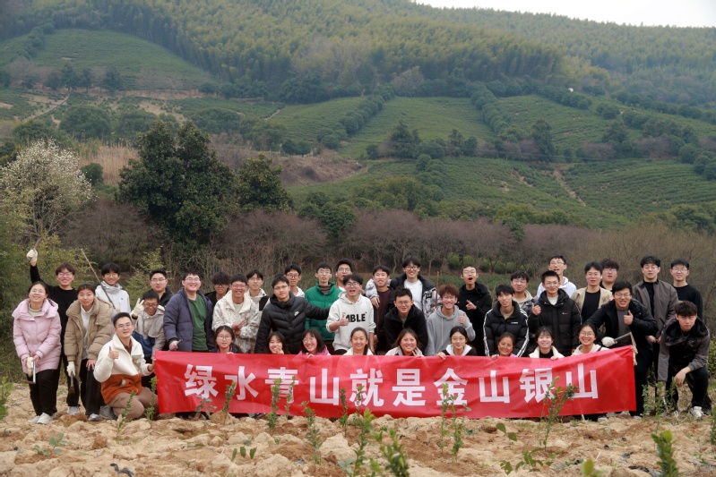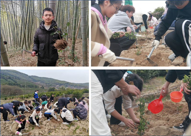 3月9日,在植树节即将到来之际,学院2023级本科生第一党支部联合2024级本科生团总支走进溧阳市戴埠镇南渚村开展“‘遇候’春笋,植树青山”劳动教育活动。辅导员和学生党团员代表共同参加此次活动。