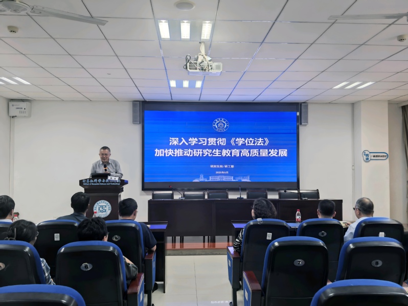 为深入贯彻落实教育部关于学习《中华人民共和国学位法》(以下简称《学位法》)的相关精神,明确学位管理工作要求,切实保障研究生培养质量与学位授予质量,我院于5月30日下午举办《学位法》政策宣讲会。会议特邀研究生院院长陈兵教授作专题解读,研究生院副院长郑祥明、王英莅临指导。学院领导班子成员、全体博士生导师、硕士生导师、青年教师及研究生教务教学秘书等参加会议。