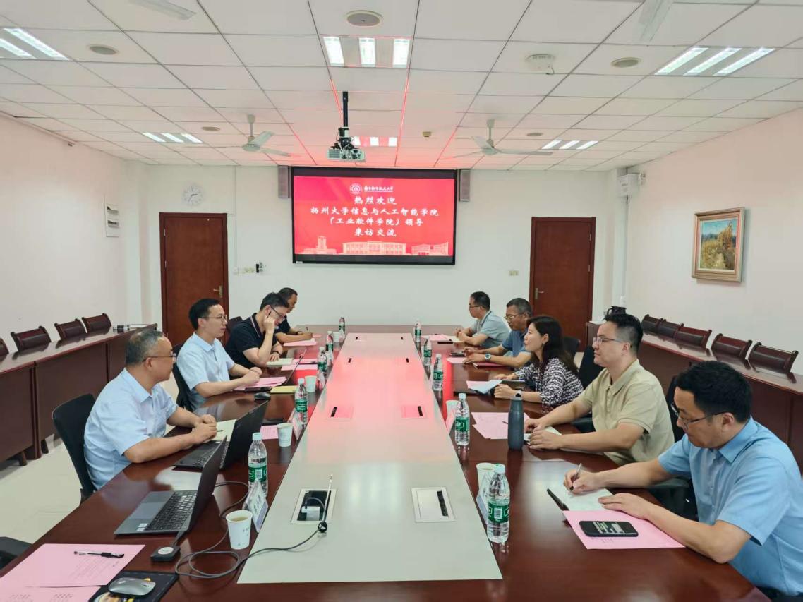 9月8日,扬州大学信息与人工智能学院(工业软件学院)院长刘维,副院长郭志波、裔扬、高锐一行来计算机学院调研交流,计算机学院院长黄圣君,副院长赵彦超、周宇及相关老师参加会议。会议由黄圣君主持。